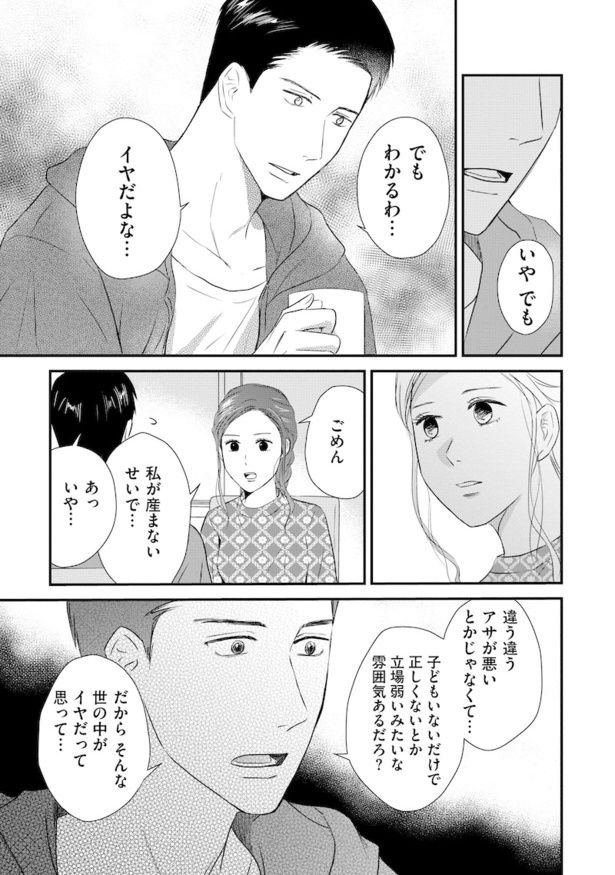 子どもは産まないと決めたアサと、その考えに同意して結婚した夫・哲也。“DINKs”として穏やかに暮らしていたはずのふたりの関係が、ある出来事をきっかけに少しずつ揺らぎはじめる。「産まない選択」に対して、実は哲也には秘めた思いがあって――。選択的子なし夫婦のリアルストーリー『DINKsのトツキトオカ 「産まない女」はダメですか?』をお届けします。