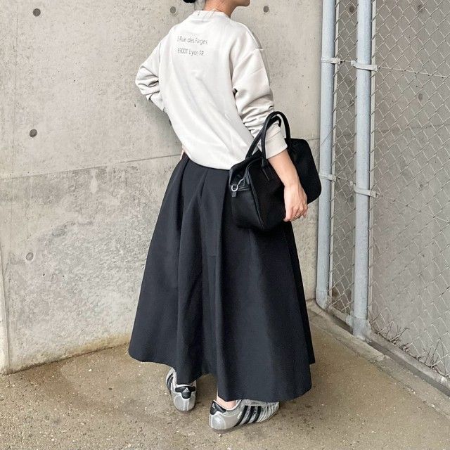 スナップで着用しているトップスは>>kuih(クイ)「軽量ボンディングバックラメロゴプルオーバー」