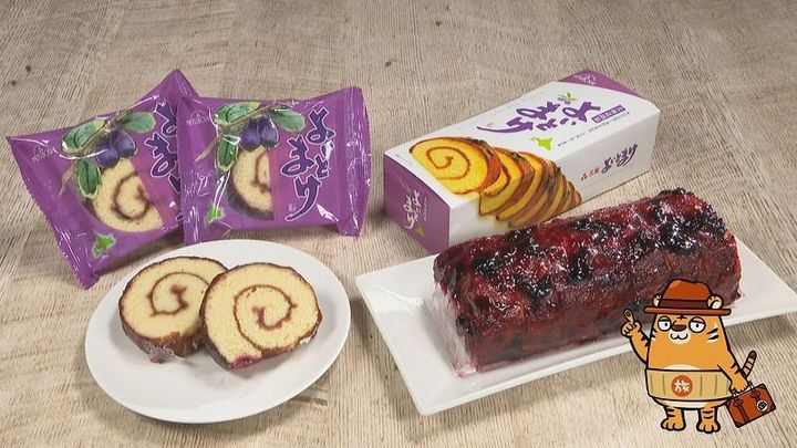 ハスカップジャムが、たっぷりとかかったロールカステラ。
