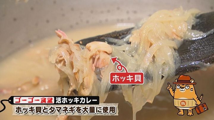 ゴーゴー食堂 鈴木さん:「ウチは刺身用をカレーでボイルする感じで出していてそれで活ホッキカレーという名前で出している」