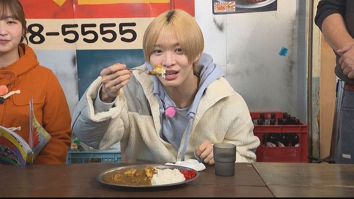 新くん:「いただきます。ホッキ貝を噛むたびに旨味が出てきてルーと混ざってめちゃくちゃおいしいですね。『ホッキ貝のお出汁がすごくいいお仕事をしてらっしゃる』」
