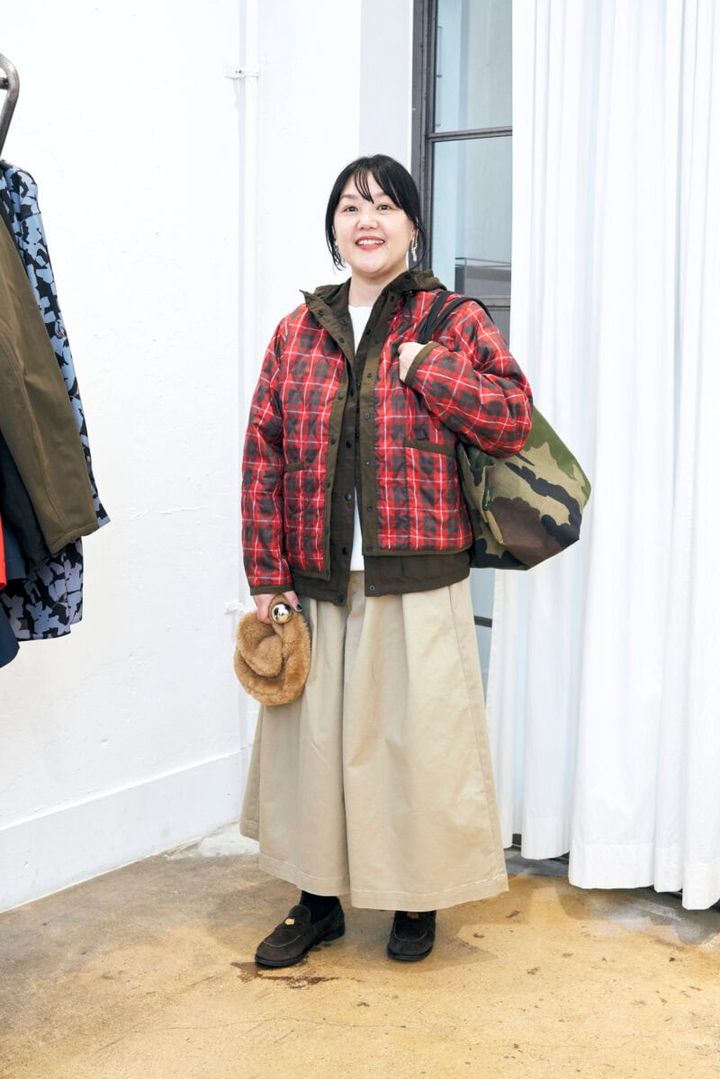 【金曜日】➁ ベーシックなワイドチノパンにチェックアウターで華やかに