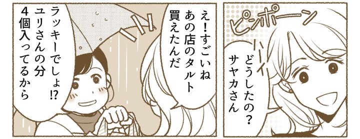 私はサヤカ(40代前半)。中学生の息子と、小3の娘がいます。息子がまだ小さいときは、まわりのママも同世代ばかりでママ友がすぐにできましたが、娘の代は若いお母さんが多くて、あまりママ友ができませんでした。そんなとき、娘が仲良くなった友だちの母・ユリ(40代前半)さんが、たまたま私と同世代だったのです。一緒に遊びに行くならやはり同世代で気が合う人がいいですよね。だから、私はユリさんに喜んでもらおうと、気をつかっているつもりでした。しかしユリさんはちょっと抜けたところがあるんです。