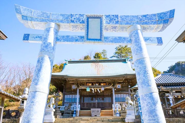 やきものの町ならではの風情が感じられる「陶山神社」には、「陶祖 李参平碑」の碑が建っています。有田焼の大鳥居や狛犬、大水瓶、玉垣も必見です。