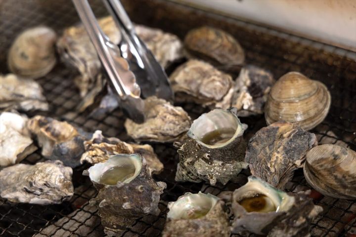 このカキは「竹崎カキ」と呼ばれ、プリプリとした食感でボリューム満点なのが魅力です。可食部分の水分が少ないのも特徴で、焼いた時に身が縮みにくく、一口頬張ると旨みと甘みが口いっぱいに広がります。ぜひ味わってみてくださいね。