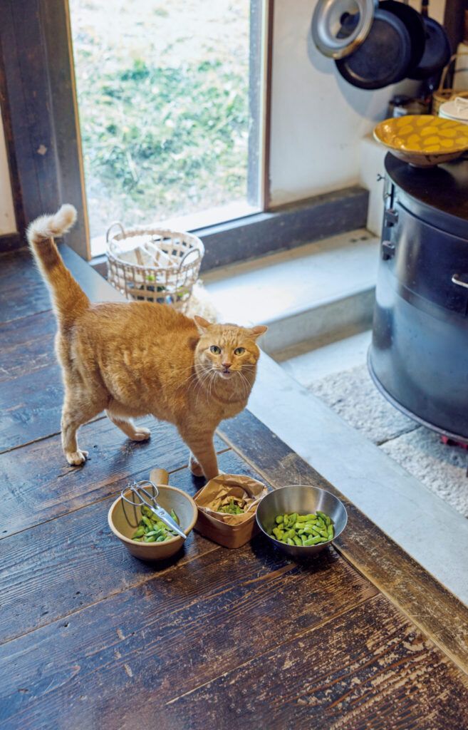 築150年の古民家だというのに、思いがけず明るい台所だ。正面に設けられた明かり取りの窓から、やわらかな光が注ぎ込んでいる。