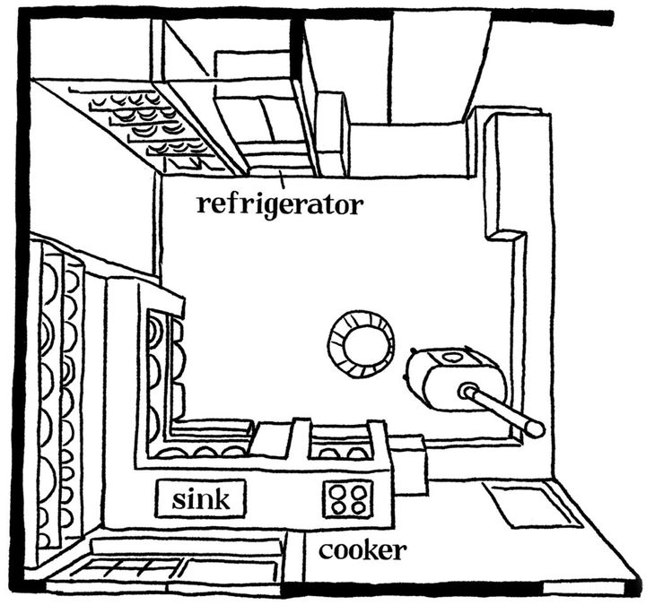 「台所を明るく、白いモルタルにしたいというのは私の希望です。食材をストックする箱や、ゴミ箱は廃れた感じの白木でシンク下に収まるように。台の角は面取りをしてやわらかく、丸みが出るように渡邊さんに作ってもらいました」