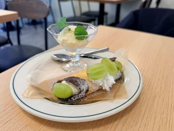 もう一つは「季節のカンノーロ」(550円)。サクサクの生地にチョコレートがコーティングされ、チーズクリームを絞ったイタリア発祥のスイーツ。日本ではなかなか出会えない味わいに、思わず笑顔がこぼれました。