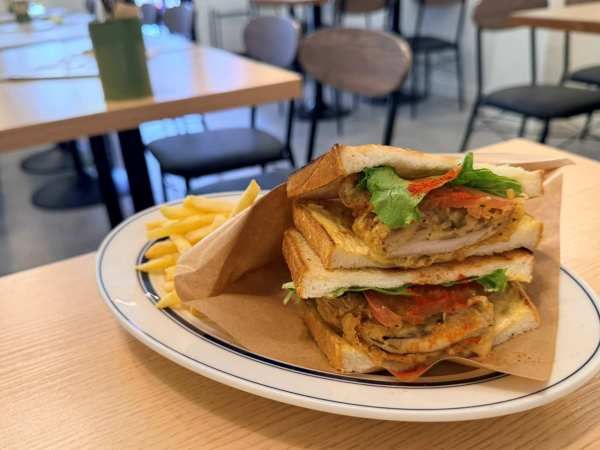 私がいただいたのは、「クリスピーチキンサンドイッチ」(1,100円)。サクサク衣のチキンにこんがりトーストしたパンの香ばしさが重なり、食べ応え満点でした!