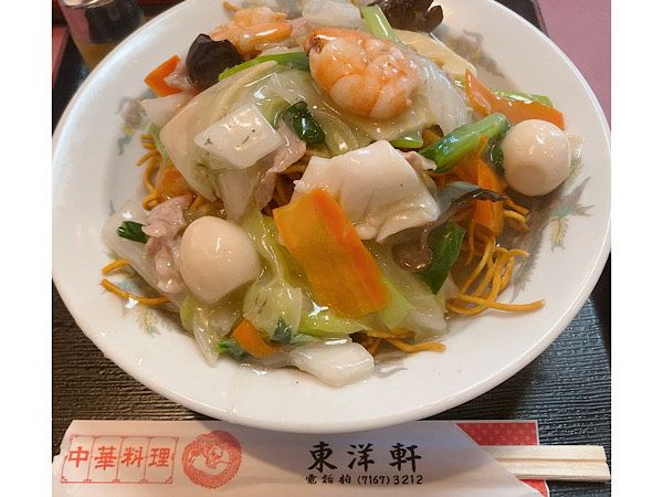 かた焼きそばに変更できたのでそちらでお願いをしました。 カリカリクリスピーな麺に、とろっとアツアツの餡がかかり、美味しい!具材もふんだんに使われているので満足感もかなりあります。食べ進めるうちに麺と餡が絡んでパリパリからクタクタに食感が変わるのも楽しいですよね。