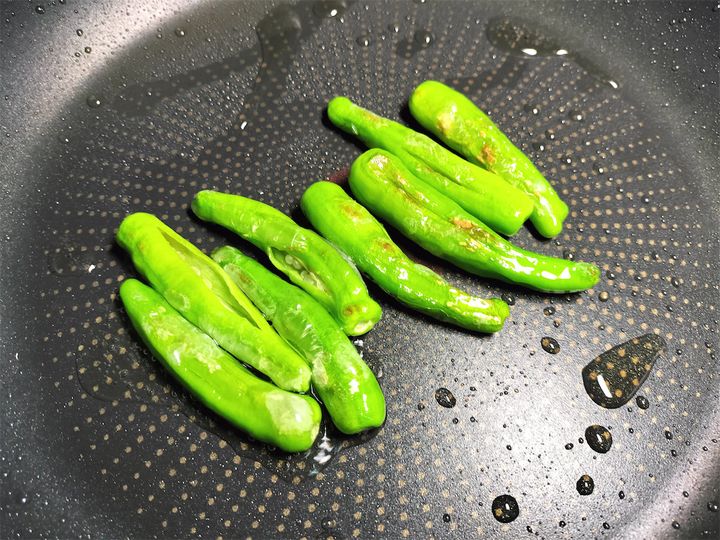 3. ししとうに焼き色がつくまでさっと焼き、取り出しておきます。