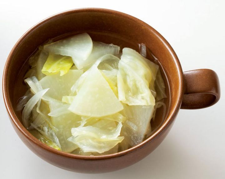 原因のひとつである老廃物を体内から排出するのを助けるのが、「脂肪燃焼ダイエットスープ」です。キャベツ、玉ねぎ、にんじんといった身近な野菜を数種類とり合わせて、ごく少量の鶏がらスープの素や塩で味つけしてコトコトと煮るだけ。簡単でとってもシンプルなスープですが、野菜の相乗効果でうまみや甘みはもちろん、ファイトケミカルなどの有効成分や食物繊維をたっぷりとることができます。