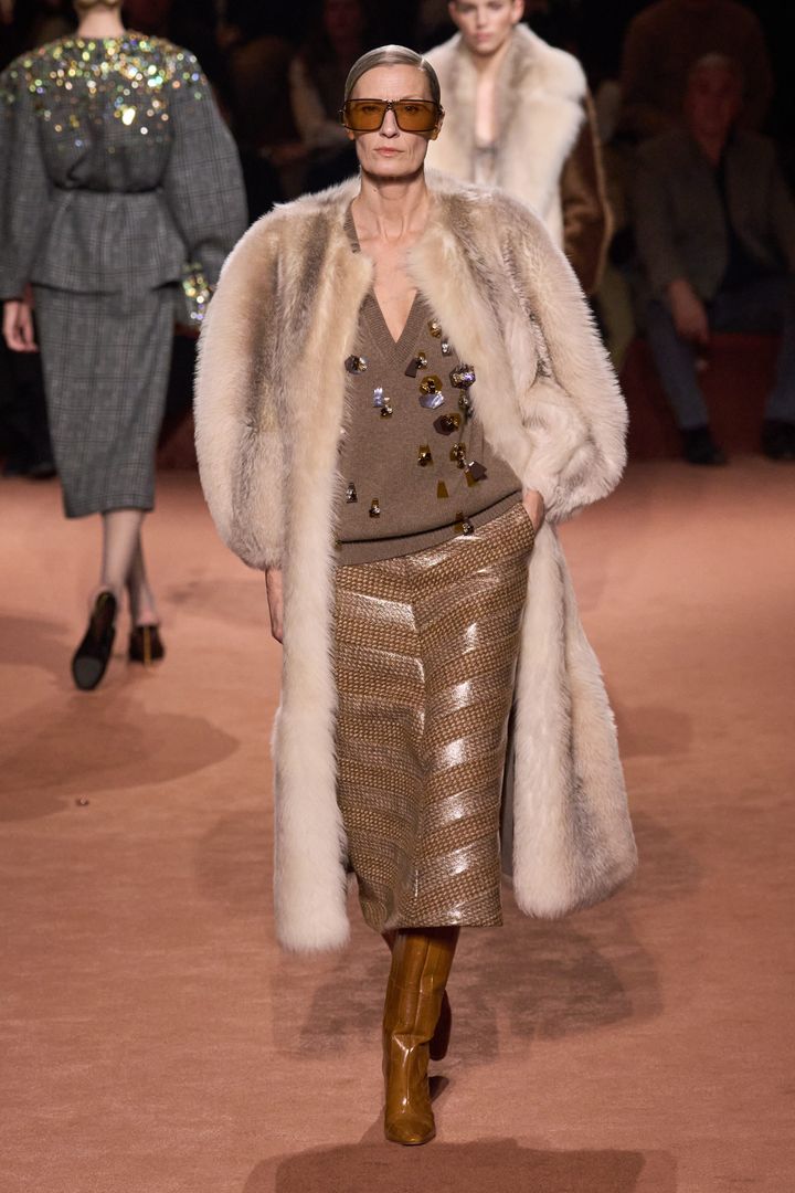 さらに、2025-26年秋冬シーズンのランウェイでは、存在感たっぷりのニットが数多く登場している。ジル・サンダーはブラックのクルーネックにシルバーのスパークルを知らったニットを発表し、ヌメロ ヴェントゥーノ(No.21)ではゴールドの糸を織り込んだニットがランウェイに光を放った。プラダのニットにはシルバーフラワーやピンクレジンのチャームなどがあしらわれ、アクセサリーいらずのデザインに。