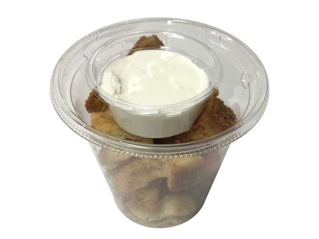 甘じょっぱく味付けし、オーブンでサクッと食感に焼き上げたスティックラスクです。信州産クリームチーズソースにディップしてお召し上がりください。