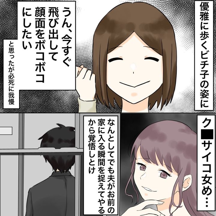 夫がビチ子の家に入る瞬間を押さえてやる!とみちこは有休を取って張り付くことにした。