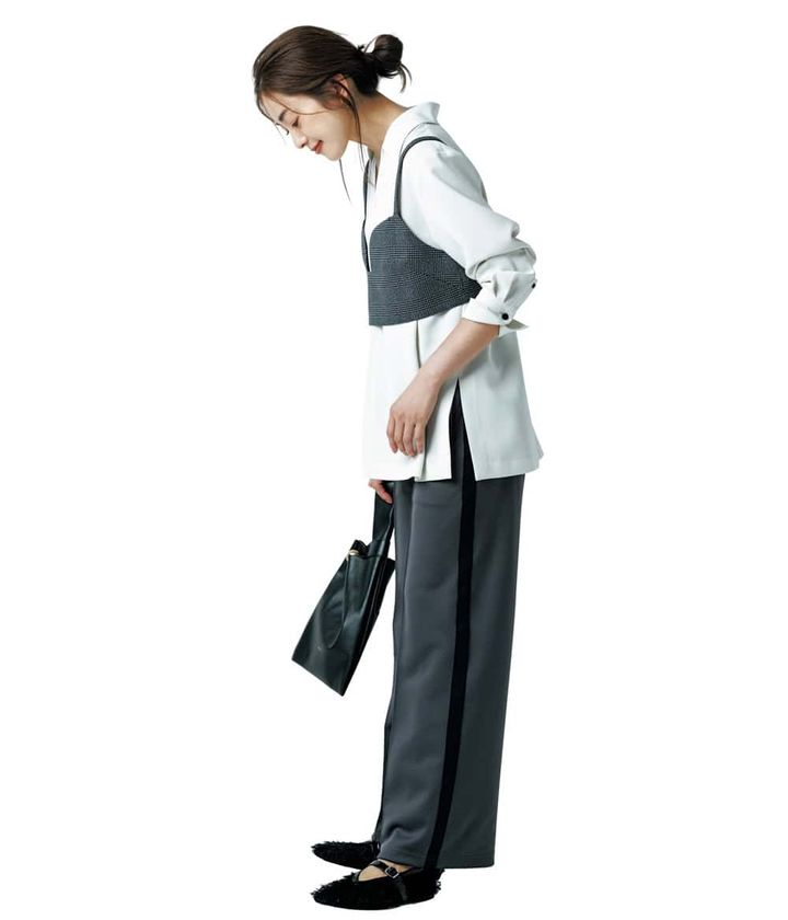 【ビスチェ×ラインパンツ】トレンド盛りコーデはモノトーンで整えて