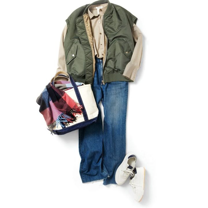 3. 【60代ファッション】ご近所ファッションもMA-1風ベストで一気に今っぽく!素敵な宝島田家物語26日目【60代秋の着まわし30days Day26】