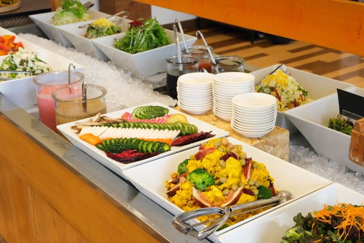 色とりどりの野菜が並ぶサラダバー
