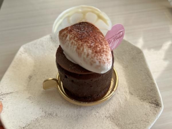 フォンダンショコラは、温め方の説明書も付いていて、その通り温めると中のチョコがとろーり。美味しくいただきました♪