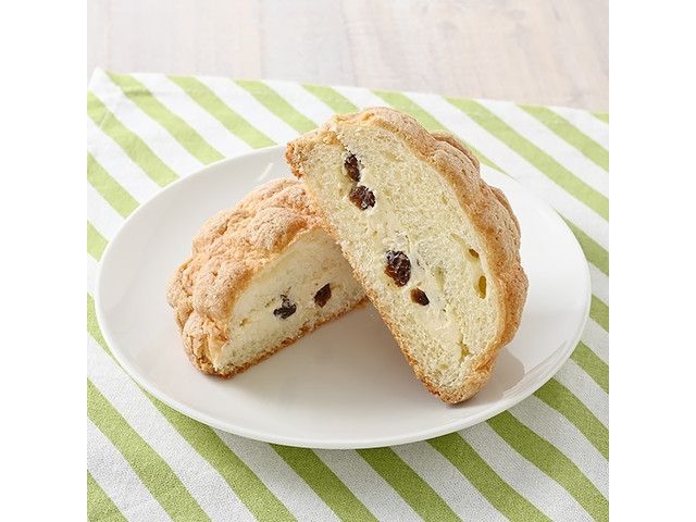 バタービスケット生地をかぶせたメロンパンに、ラムレーズンバタークリームをサンドしました。 【洋酒使用(アルコール分0.6%)】 [数量限定]