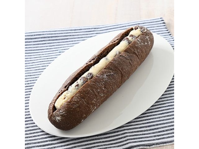 チョコフランスパン生地にラムレーズンクリームをサンドした大人の味わいのショコラフランスです。 【洋酒使用(アルコール分0.7%)】 [数量限定] ※北海道では一部仕様が異なります。