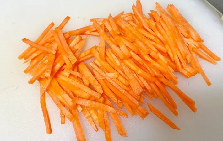まず、ニンジンを細切りにします。