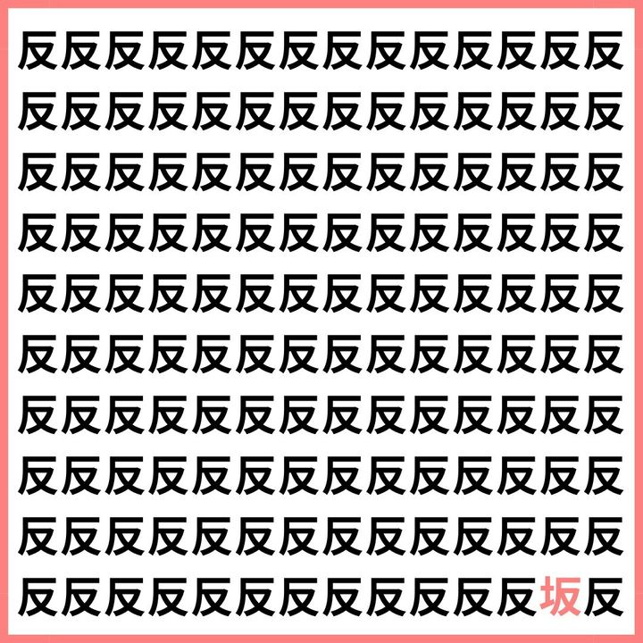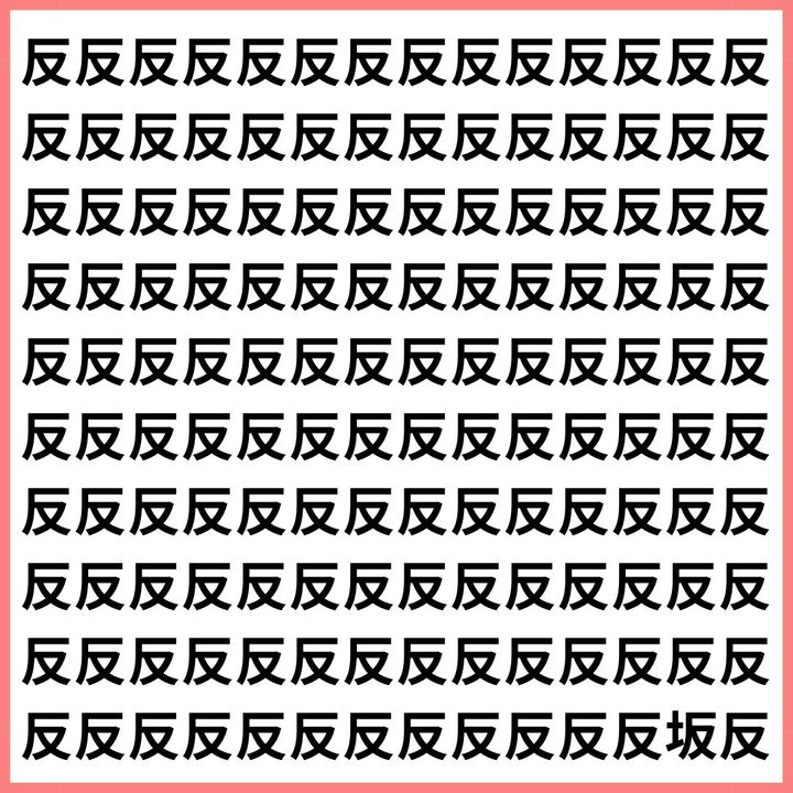 たくさんの「反」の中に、1文字だけ違う漢字が混ざっています。