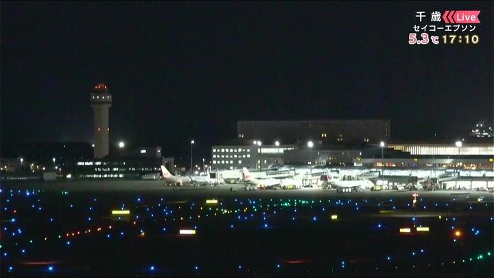 背景は1日午後5時ごろの新千歳空港情報カメラ