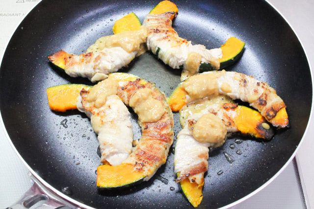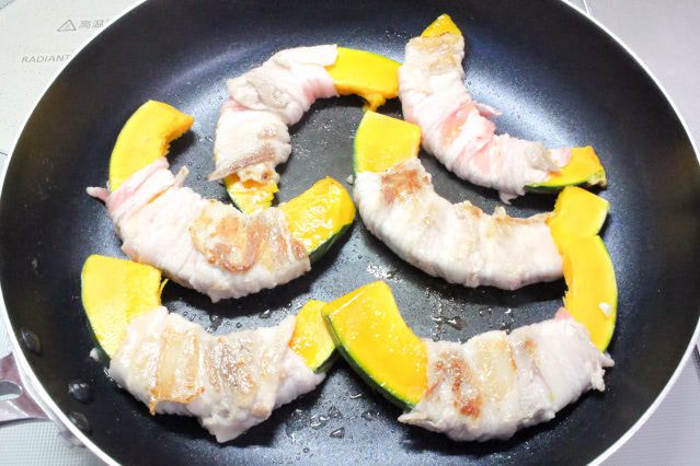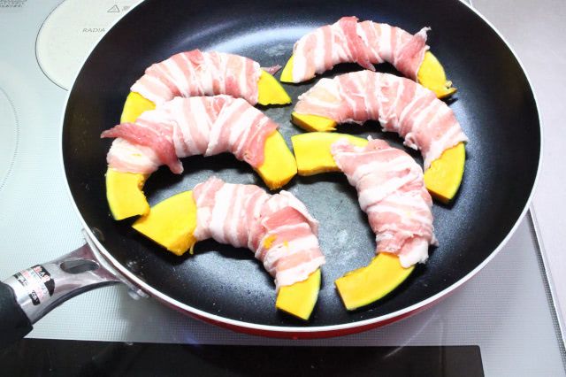 3. 【コールドスタート調理】なら焦げない・生焼けしない!「かぼちゃの豚巻き」を冷たいフライパンから焼いてみた
