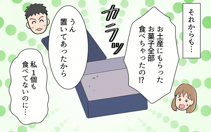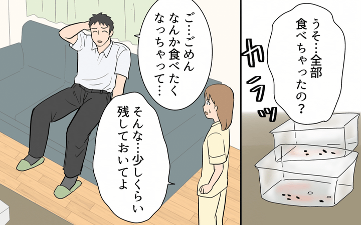 食べ物のことになると性格が豹変する夫に、もはや戸惑いしかありません。何度注意しても、夫は家にある食べ物を片っ端から食べてしまいます。