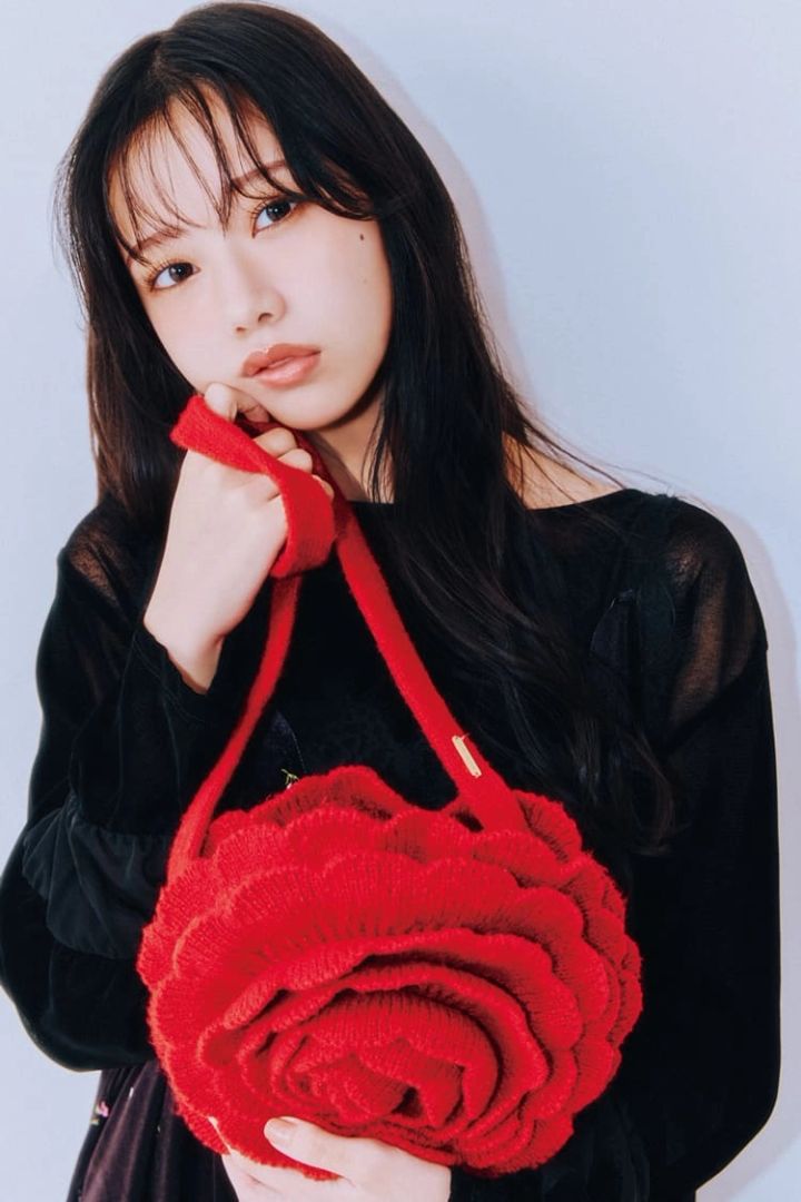 赤ローズバッグ 6,600円/kaorinomori(OVERRIDE ルミネエスト新宿)ベロア小花柄キャミワンピース 24,200円/The Girls Society 黒ベロアトップス 12,100円/アールビーエス(レイ ビームス 新宿)