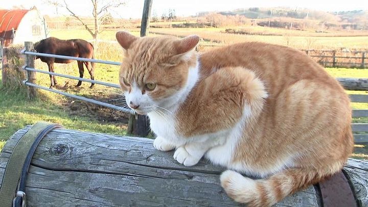 牧場でサラブレット以上に存在感を見せているのが、看板猫の「メト」です。
