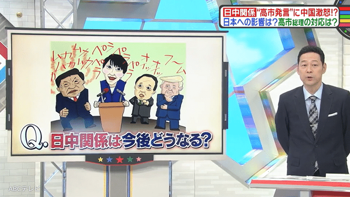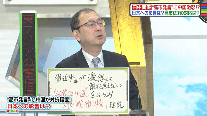 なお、悪化している日中関係の問題は、11月29日に生放送された情報バラエティ番組『教えて!ニュースライブ 正義のミカタ』(ABCテレビ)で取り上げられた。