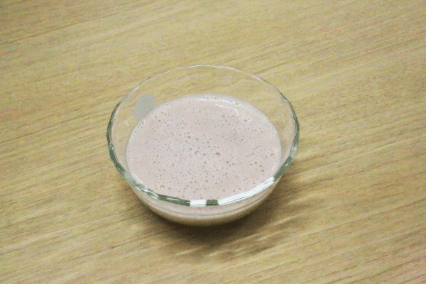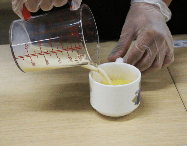 2.カップに豆乳を少しずつ混ぜながら加えます。