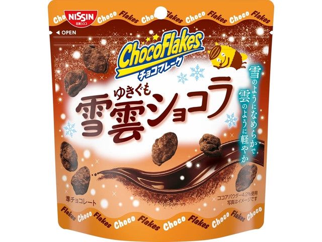 ・“雪”のようになめらかなくちどけと“雲”のように軽やかな食感の「チョコフレーク」 ・日清シスコの「チョコフレーク」史上最も薄いコーンフレークを、くちどけなめらかなチョコレートで包み込み、ココアパウダーをまとわせました ・“雪”と“雲”で本商品のくちどけや食感に加え、季節感を表現したパッケージ ・食べたい分を食べたい時に楽しめる、持ち運びにも便利なチャック付きスタンドパック