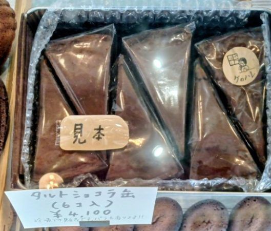 こちらは↓タルトショコラです。写真は6個の缶入りですがバラ売りもあります。冷凍品です。食べたい数だけ解凍出来るからいいですね。