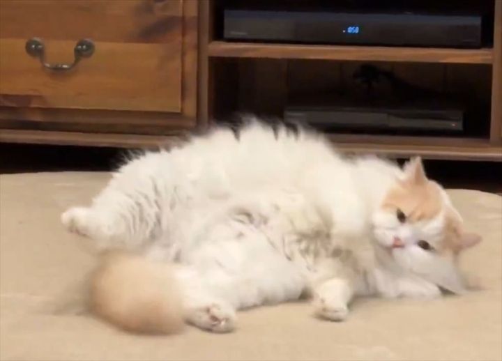 3. 疲れちゃったネコ。ゆっくり毛づくろいしてから寝転ぶ姿に反響「連休が必要そうですね・・」「忙しかった日の私」
