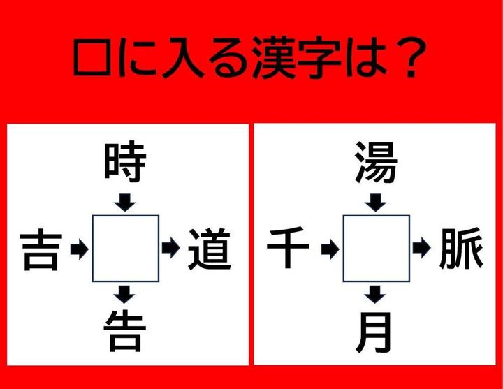【漢字パズル】吉□、時□、□道、□告 □に入る漢字は何…?