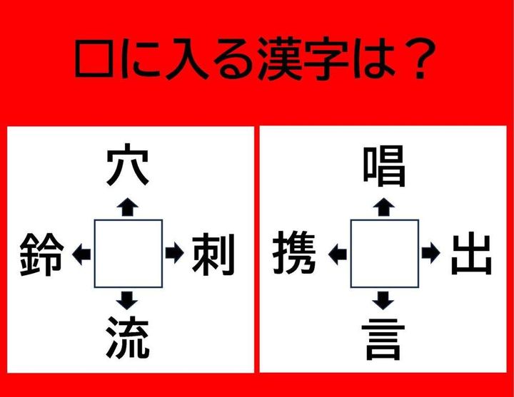 2. 【漢字パズル】□鈴、□穴、□刺、□流 □に入る漢字は何…?