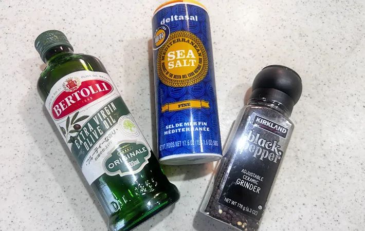 2. オリーブオイル、塩、コショウを混ぜ合わせる