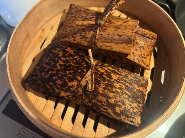 4.3を3つに分けて、竹の皮で包む。
