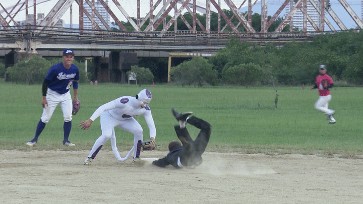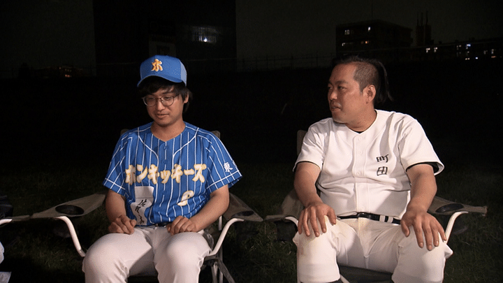 グラウンドでは、見取り図の掛け声で一同が守備練習を開始。各自希望のポジションにつき、適正をチェックする。ドラァグクイーンのキャッチャー、イルローザのノックで守備力をアピールしたのは、候補生のカバディ大澤だ。野球の名門校出身でカバディ日本代表でもある大澤を早押しでノブがゲット。大悟から「ノブチームは芸人が少ない」と指摘されたノブは、ものまねレパートリーが無限のベテランものまね芸人、古賀シュウを獲得する。