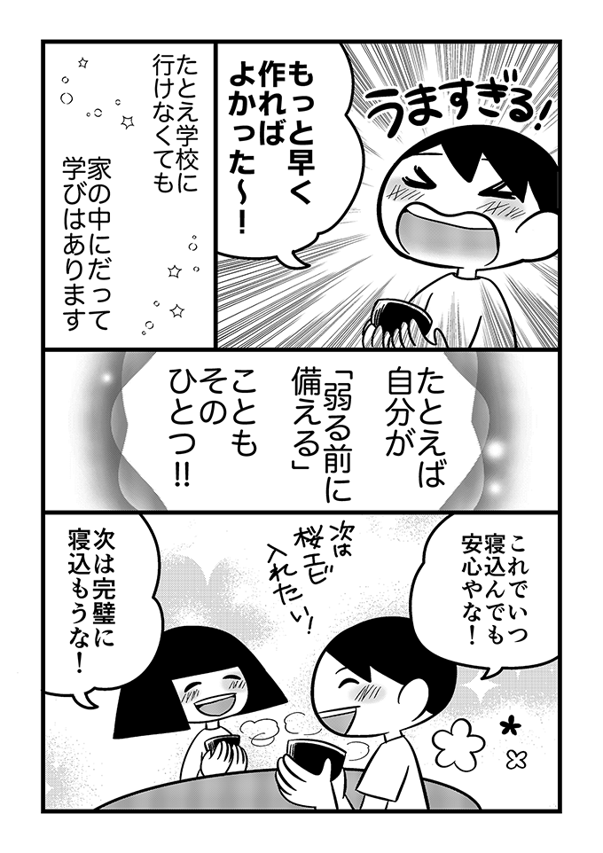 子どもが不登校になって直面したのは「お昼ごはんどうする問題」だった! このお話は、発達障害の息子くんが、少しずつごはんづくりに目覚めるステップアップストーリー。