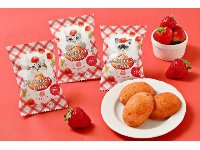 いちごの甘酸っぱさと甘い香りが広がる、新作のいちごケーキです。いちごジャムを使用し、ふんわりしっとりな食感に焼き上げました。パッケージは、猫専門イラストレーター Coony(クーニー)さんが描いた、あどけなさが残る“こねこ”をデザインしました。3種類でご用意しておりますので、家ねこちゃんに似ている子やお好きなデザインでチョイスしてくださいね。ねこ好きさんはもちろん、いちご好きの方へのギフトにもぴったりな焼き菓子です。