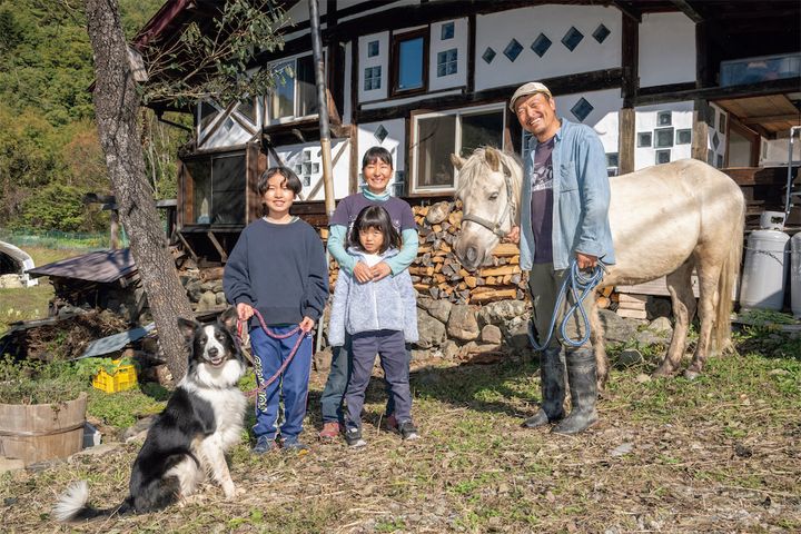 農耕馬文化の継承や、地域内外の子どもの保育や教育、移住推進など、さまざまな活動に取り組んでいる「うまや七福」の横山夫妻。
