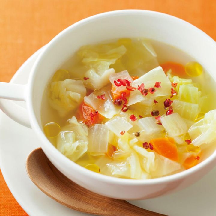脂肪燃焼ダイエットベジスープ(キャベツ×玉ねぎ+にんじん)+オリーブ油&ピンクペッパー