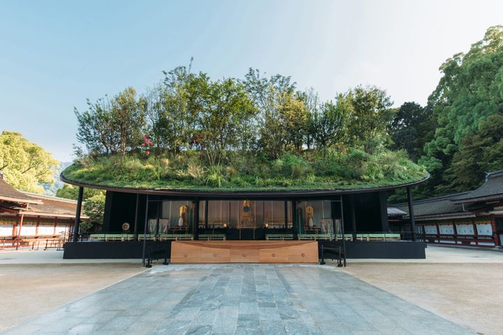※2025年12月現在、「御本殿」大改修に伴い、建築家・藤本壮介氏の設計による「仮殿」(写真)へ参拝可能。