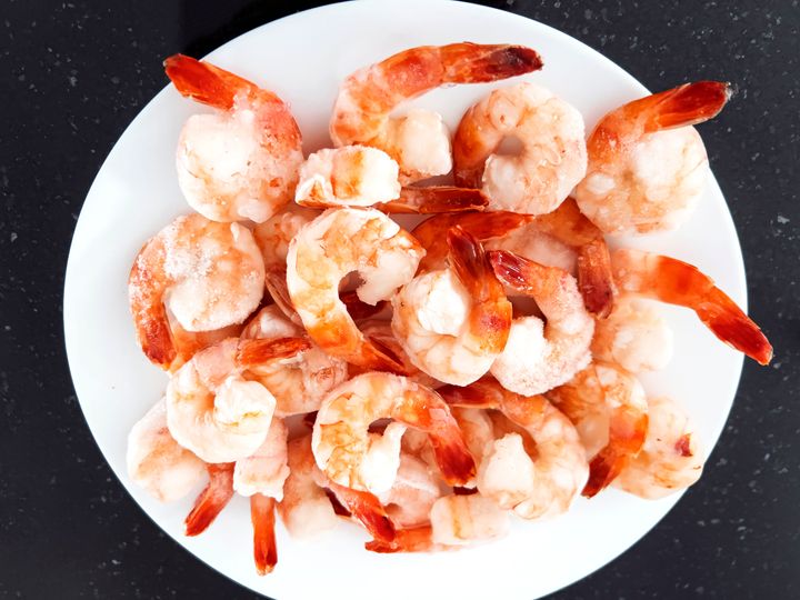 すぐに解凍、調理できるたんぱく質なら、エビが断然おすすめ。もっとも素早い解凍方法は、エビをザルに入れ、冷水で洗い流しながら時々かき混ぜ、完全に解凍するまでこれを続けること。たった5~10分で、炒め物に加えたりパスタに入れたりできる状態になる。