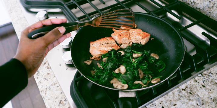 「サーモンには栄養上の利点がいくつかあります。とくに注目すべきなのは、オメガ3脂肪酸を豊富に含み、体内の炎症を抑制し、心臓と脳の健康をサポートする点です」と、話すのは「リブ・イット・アップ」の登録栄養士であるジョーダン・ヒルさん。オメガ3脂肪酸の含有量こそが、サーモンのもっとも優れている点。アメリカ国立衛生研究所(NIH)によると、サーモンはオメガ3脂肪酸DHAおよびEPAの主要な食品源であり、これらは人体が直接利用できる形態であるという(植物性食品に含まれるALAは、利用される前にEPA、そしてDHAに変換する必要がある)。オメガ3脂肪酸は、細胞膜の形成、とくに網膜や脳において重要な役割を果たすうえ、体にエネルギーを供給する。さらに、トリグリセリドや「悪玉」コレステロールであるLDLの数値を下げることも示されており、『ジャーナル・オブ・ジ・アメリカン・ハート・アソシエーション』に掲載されたレビューでは、冠状動脈性心臓病や心臓発作のリスク低下に役立つ可能性が示されている。