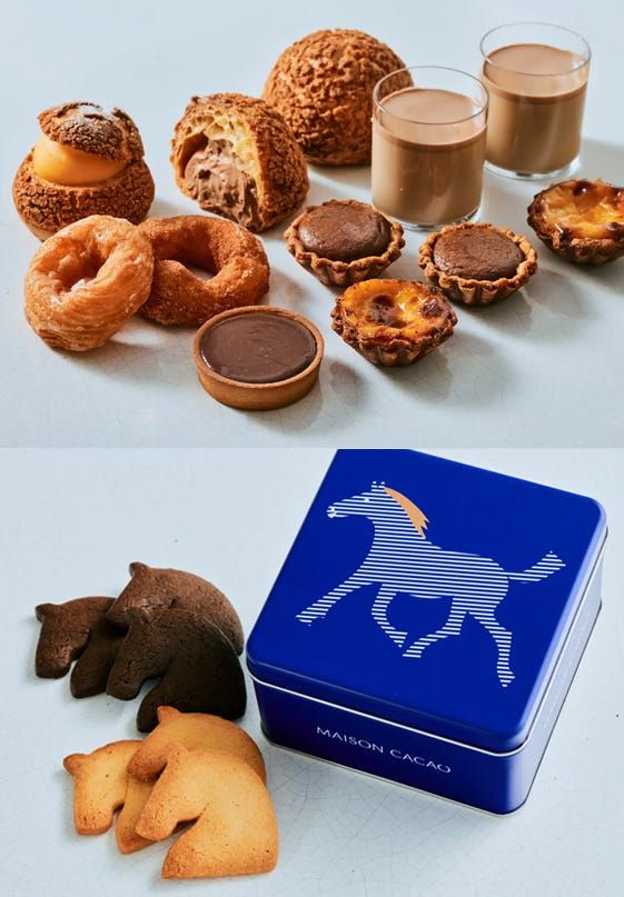スイーツは人気の「生チョコタルト」や「生フレンチクルーラー」、新作の「生シュークリーム」など、10品以上のメニューがラインナップ。スイーツが出来上がるとベルが鳴り、ショコラティエがキッチンからサーブしてくれるため、その瞬間だけの味わいや香りを堪能できる特別な時間が待っている。また、鎌倉ゆかりの“馬”を象徴にした焼き菓子「CHEVAL SABLE(シュヴァル・サブレ)」もお目見え。愛らしい馬型のサブレは、ほろりとほどける食感と上品な甘さが魅力。鎌倉のストーリーを感じられる焼き菓子は、手土産にもぴったり!
